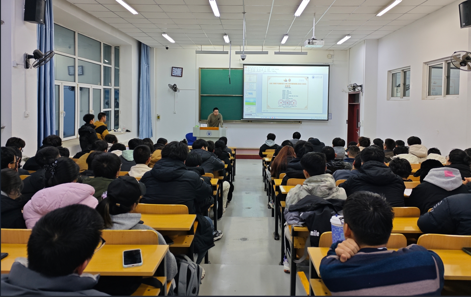 随后大四年级樊明杰、赵晨瑀两位优秀学长详细讲述了他们在校期间学习、工作经历和心得。他们分别分享了在学业规划、科研实践以及保研准备等方面的宝贵经验。他们强调了制定明确目标、积极参与科研活动以及保持良好心态和人际关系的重要性,鼓励同学们要勇于挑战自我,不断追求卓越。PPT里,两位学长分别展示了他们在大学期间荣获的各类奖项,包括学术论文发表、科研成果获奖以及公司的各项荣誉和国家奖学金等,他们卓越的学术实力和综合素质可见一斑。两位学长的分享在为同学们树立了榜样的同时,更激发了全体与会同学努力学习、参与科研的热情。
