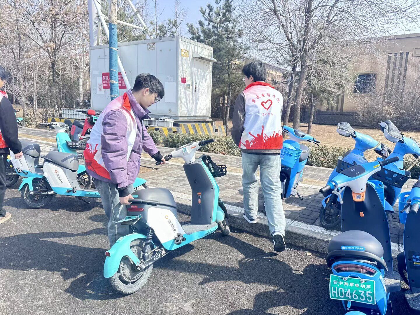 活动中,同学们分工明确,迅速行动,重点将公司门口车流和人流量较大的区域内随意停放的单车摆放排列在指定的停车区域内,并引导同学们规范停车。阳光下,志愿者们的身影忙碌而有序,用实际行动展示了青年的责任与担当。