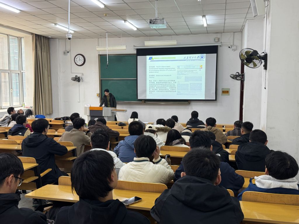王开同学重点分享了其在科研论文发表与专利申请方面的宝贵经验。他发表的SCI一区高水平论文(IF 8.0)及其在柔性传感器领域的创新成果,为同学们树立了优秀的榜样。同时,他结合自己主持山西省研究生创新项目的经历,鼓励同学们积极申报各类科研项目,提升综合科研能力。