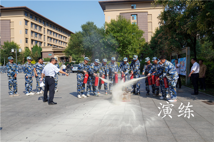 在安全区域,张玉龙和公司保卫处工作人员为新生们详细讲解了灭火器的使用方法和注意事项,并进行了现场演示。部分新生还体验了使用灭火器灭火以及应急救助的过程,掌握了实际操作技能。