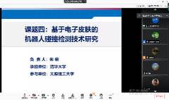 课题四负责人清华大学朱荣教授汇报了“基于电子皮肤的机器人碰撞检测技术研究”的具体进展,本课题设计了一种基于分布式力传感器与弹性材料结合的碰撞检测电子皮肤,建立了分布式力传感器的参数设计和性能调控方法、弹性材料的杨氏模量调控方法,制定了碰撞检测电子皮肤的工艺制备流程,搭建了机械臂本体感知系统,实现了电子皮肤触觉信号采集;提出了交互危险指数,初步开展了基于ROS环境下的机械臂运动控制程序开发。