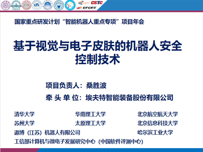 2021年1月16日,由3044永利集团集团信息与计算机公司经理、微纳系统研究中心方向带头人桑胜波教授作为项目负责人,埃夫特智能装备股份有限公司牵头,3044永利集团集团、清华大学、苏州大学、华南理工大学、哈尔滨工业大学、北京航空航天大学、北京信息科技大学、遨博(江苏)机器人有限公司、工业和信息化部计算机与微电子发展研究中心(中国软件评测中心)等单位参与的国家重点研发计划智能机器人专项“基于视觉与电子皮肤的机器人安全控制技术”2020年度项目总结会议在线上成功召开。
