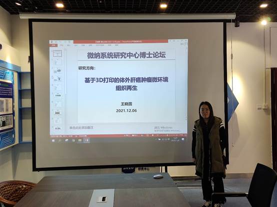 本次学术报告汇报人为王晓圆博士,汇报的内容是基于3D打印的体外肝癌肿瘤微环境组织再生。王晓圆博士结合最新的高水平论文,阐述了当前体外肝癌肿瘤微环境的重要性。随后结合参考文献设计了肝癌肿瘤微环境模型以便更好的模拟体内的肿瘤微环境。本次学术报告王博士通过相关领域研究成果的介绍,帮助参会师生更好的了解了3D共培养模型的原理与应用价值。各位老师员工就学术报告相关内容进行了热烈的讨论。