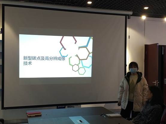 本次学术报告汇报人为张博叶博士,汇报的内容是新型碳点及高分辨成像技术。根据最新的高水平文献,总结了适合受激发射损耗显微镜(STED)成像的碳量子点(CDs)。让大家更好的了解了CDs在超分辨率成像中的优势,能够进行活细胞染色及精准生物成像。理想的细胞摄取以及独特的细胞定位的CDs可以成为亚细胞细胞器STED成像的极佳候选者。因此,它们有潜力应用于长期或体内实验中细胞事件的详细可视化。参会的各位老师和同学对相关内容进行了热烈的讨论。