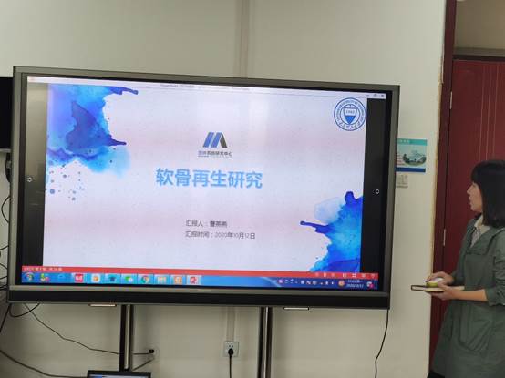 本次学术报告的汇报人为曹燕燕博士,汇报的题目是PCL/GelMA双相支架用于关节软骨再生的研究。首先曹燕燕博士介绍了关节软骨相关知识以及软骨组织工程技术的背景以及发展趋势。然后基于3D打印技术,通过相关文献的阐述,分析了3D打印复合支架在软骨再生中的应用和发展前景。之后分析了目前该领域存在的问题,并就目前可能存在的解决方案进行了深入探讨。最后参会的老师与同学对本次汇报内容进行了热烈的交流与探讨,为下一步研究工作提供了更广泛的思路。